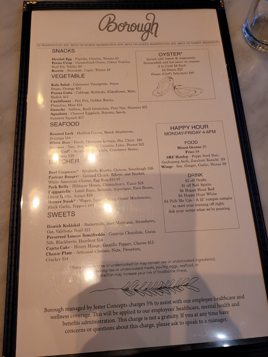 Welcome to Borough, a culinary gem located at 730 N Washington Ave, Minneapolis. This vibrant eatery beckons food enthusiasts with a menu that artfully balances bold flavors and elegant presentations. Each dish showcases a commitment to quality, as seen in their intriguing SHAREABLES like the Octopus Yam and Glazed Yellowtail.